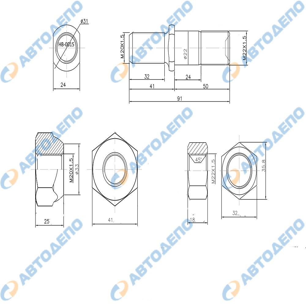 Шпилька колёсная, гайки, футорки