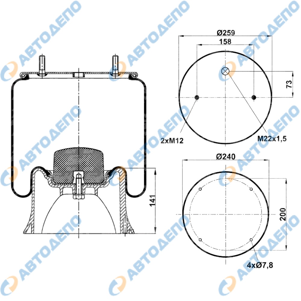 со стаканом, пластик 4отв.M12, 2шп.M12 1отв-шт.M22