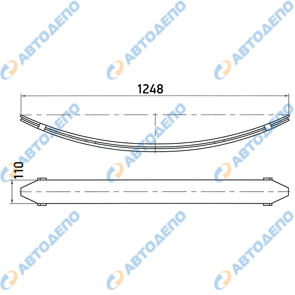 Поперечная рессора в сборе 110х14х8х1290 (2 листа)