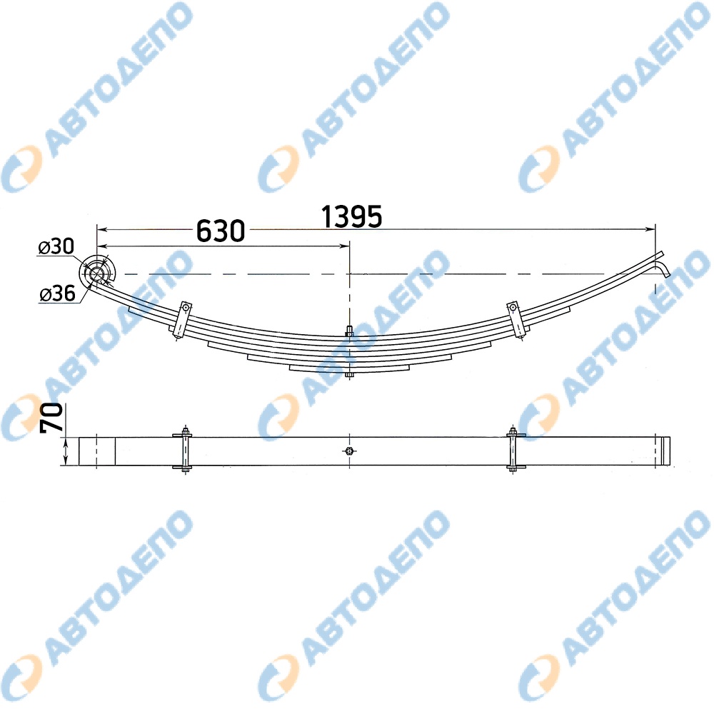 Рессора в сборе, передняя, 3 листа, параболическая